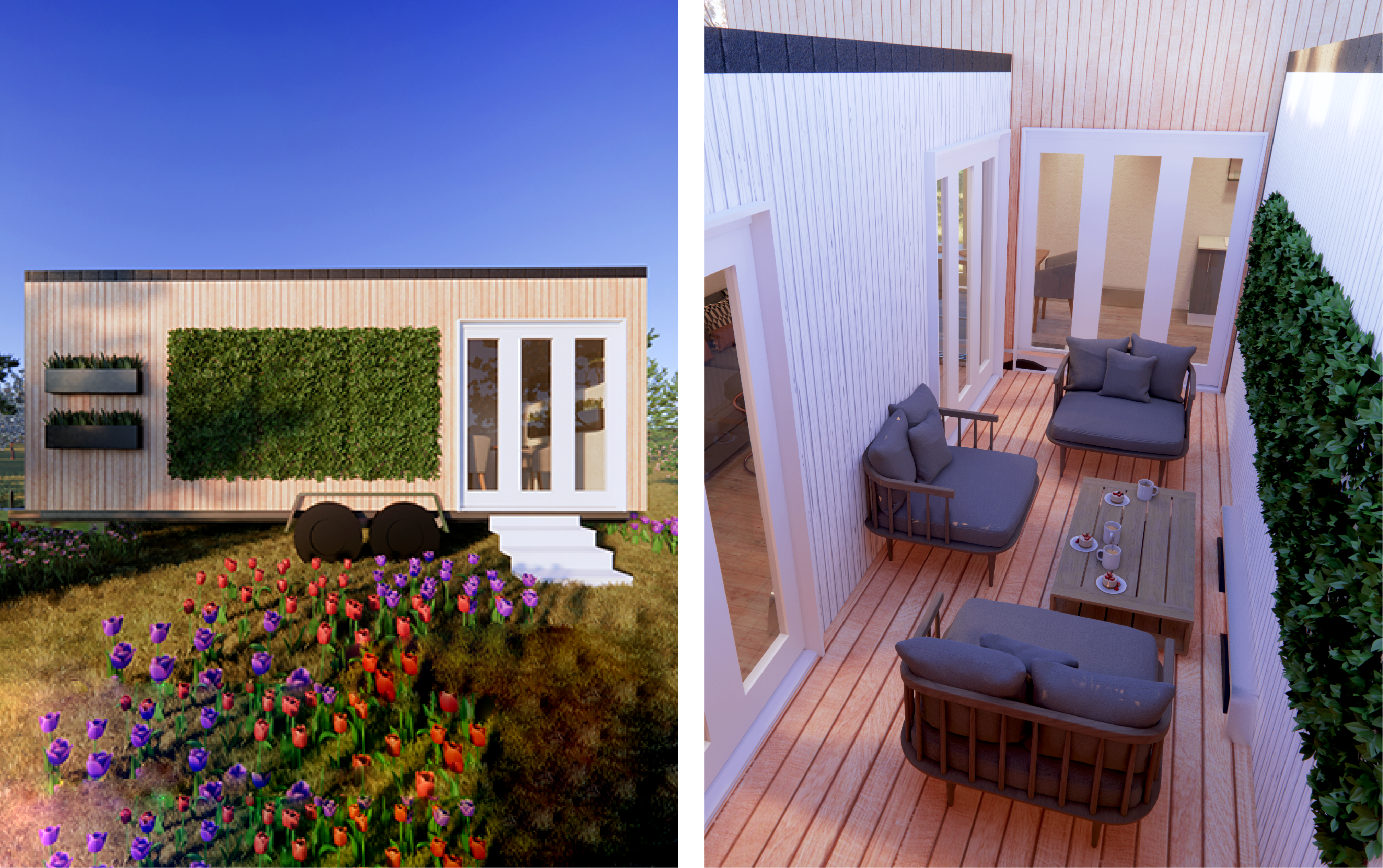 The THR Square House Collection features four tiny houses that are interlocked to create a safe haven for any large family or community that wants to maintain independence but also wants to create a shared space! These connected tiny houses will have a beautiful garden in the center to tie everything together. All houses are fully functional and equipped for everyday living, with modern designs and finishes throughout.
